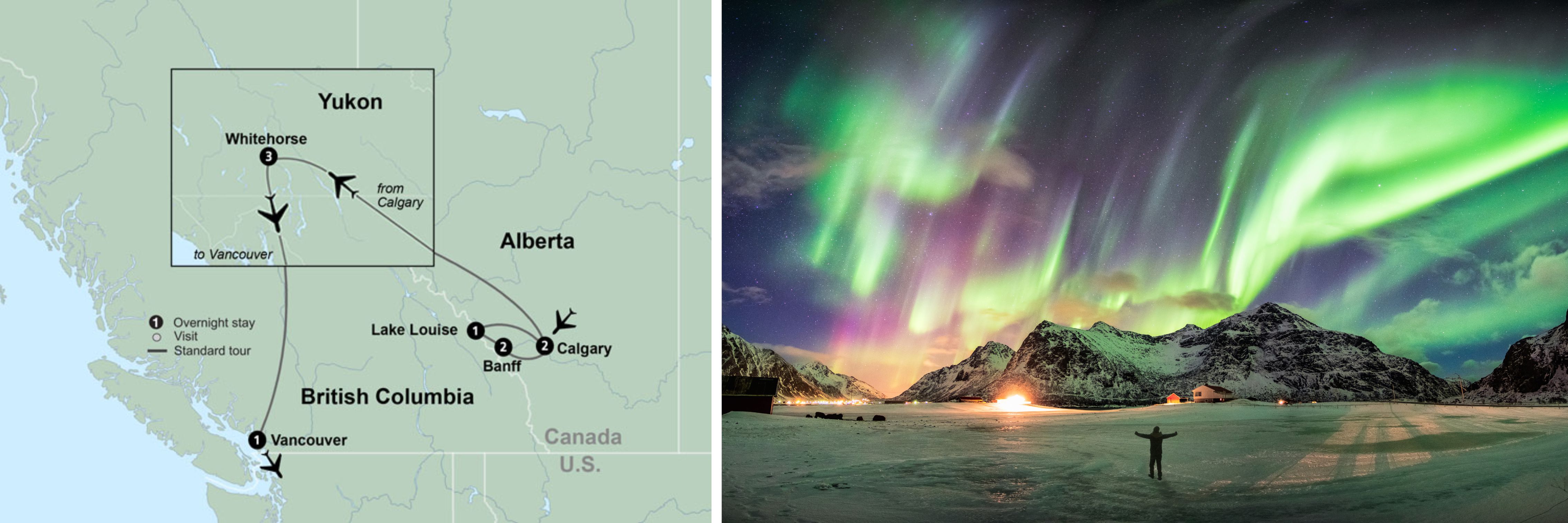 Search for the northern lights in the Yukon’s star-filled sky.